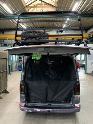 Comme nous avons monté le porte-vélos d'origine VW sur le hayon, le hayon s'alourdit en conséquence dès que les vélos sont montés.