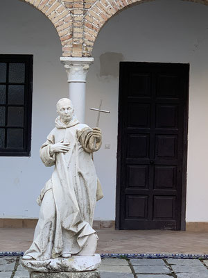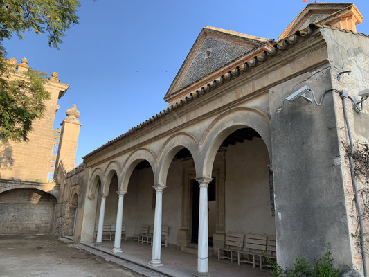 In beide gevallen komen we plekken tegen waar ons hart sneller van gaat kloppen. In Jerez de la Frontera is het een oud klooster dat plotseling links van de weg opduikt. We besluiten meteen te stoppen. Achter een hek kunnen we Hector onder een sinaasappelboom parkeren. Ik realiseer me meteen dat dit de plek is waar ik de drone wil lanceren. Terwijl ik een paar foto's vanuit de lucht maak, verkent Torgit de omgeving. Een paar minuten later ontmoeten we elkaar weer op het plein. Ik laat de drone, mobiele telefoon en dergelijke bij haar achter. - Nu wil ik de kerk bezoeken.