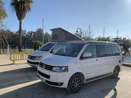 Inzwischen hat sich die Landschaft verändert. Zu unserer Linken ist Wasser zu sehen. Salzsalinen, ein wenig wie in unserem Bretagne Krimi. Inzwischen haben wir auch ein Ziel. – Eine Empfehlung, welche wir über park4night gefunden haben. Angeblich gibt es nicht weit von hier eine Möglichkeit direkt am Guadalquivir zu nächtigen. – Somit direkt an der Grenze des Nationalparks Coto de Doñana, einem flachen, periodisch überschwemmten Feuchtgebiet, den sogenannten marismas. Tausende Zugvögel überwintern hier. Ob wir auf unserer Seite des Flusses davon etwas mitbekommen? – Wir werden uns entsprechend vorsichtig „anschleichen“ – Obwohl wir nicht im Nationalpark sind, wollen wir keine Vögel aufscheuchen.
